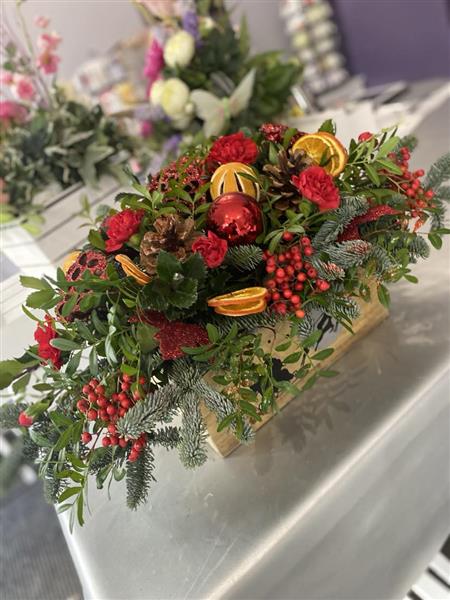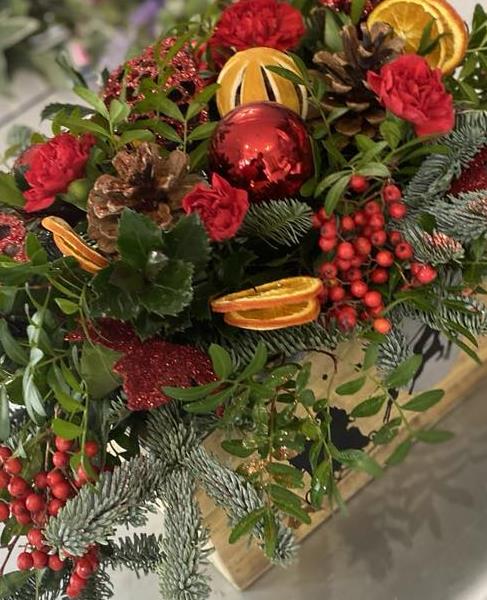 These lovely wooden crates filled with flowers will make the perfect festive gift, arranged in oasis the recipient just has to find a place to pop it and add a little water (care instructions included)