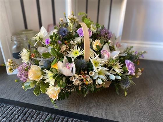 Arranged in our Tilly Basket in foam so the recipient has very little to do on arrival. it's ready to steal the spotlight in any room. Treat yourself or spoil someone dear with this pretty display